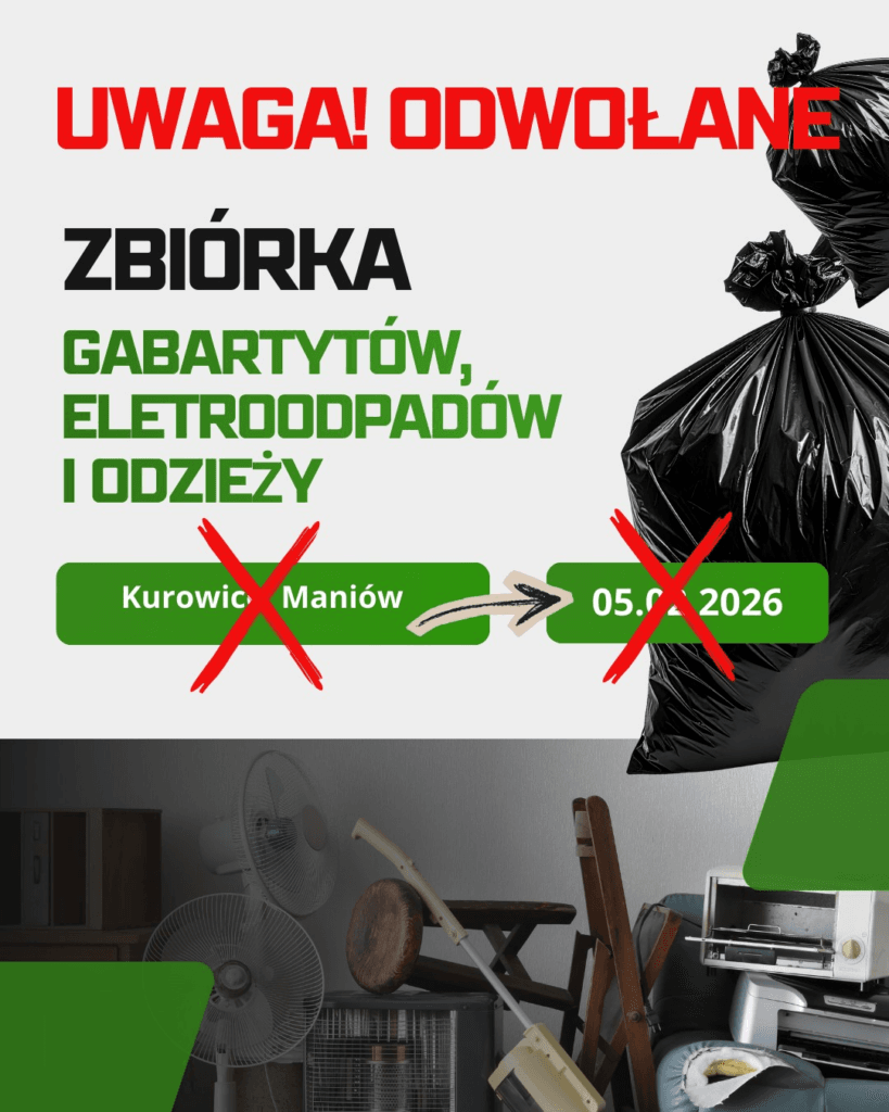 Informujemy mieszkańców, że w lutym 2026 roku na terenie naszej gminy rozpocznie się zbiórka odpadów wielkogabarytowych,