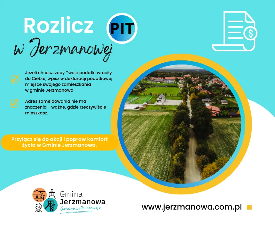 Rozpoczął się okres rozliczeniowy z Urzędem Skarbowym z podatku dochodowego za rok 2023. Dlatego przypominamy Państwu jak ważna jest kwestia rozliczenia podatku w miejscu zamieszkania. To gdzie się rozliczamy jest niezwykle ważne dla gminy, w której faktycznie się mieszka. Jeżeli jesteście Państwo mieszkańcami Gminy Jerzmanowa, a nie jesteście tutaj zameldowani, zachęcamy, aby w rozliczeniu podatku dochodowego PIT, wskazać faktyczne miejsce zamieszkania – Gminę Jerzmanowa.
