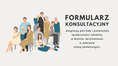 Celem konsultacji jest zebranie opinii, wniosków i uwag mieszkańców Gminy Jerzmanowa na temat projektu diagnozy dotyczącej potrzeb oraz potencjału lokalnej społeczności w obszarze usług społecznych.
