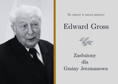 Z głębokim smutkiem i żalem przyjęliśmy wiadomość o śmierci śp. Edwarda Grossa , lokalnego artysty, twórcy i wieloletniego nauczyciela, który został pierwszym „Zasłużonym dla Gminy Jerzmanowa” .