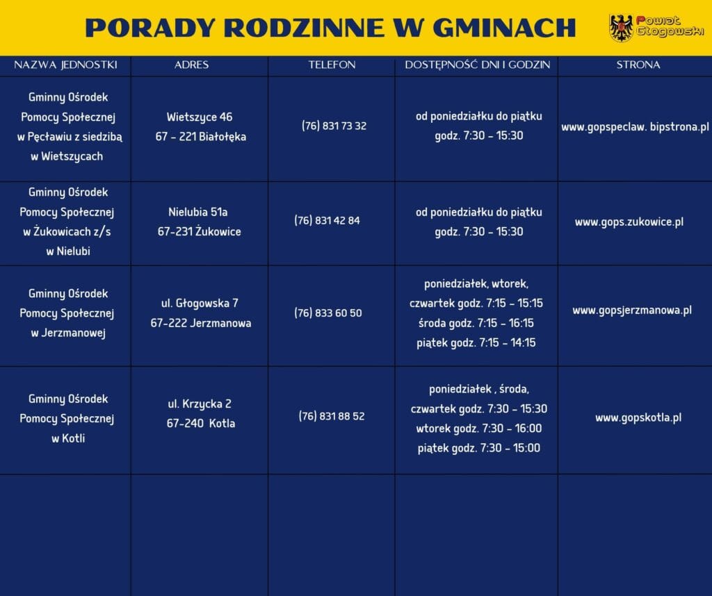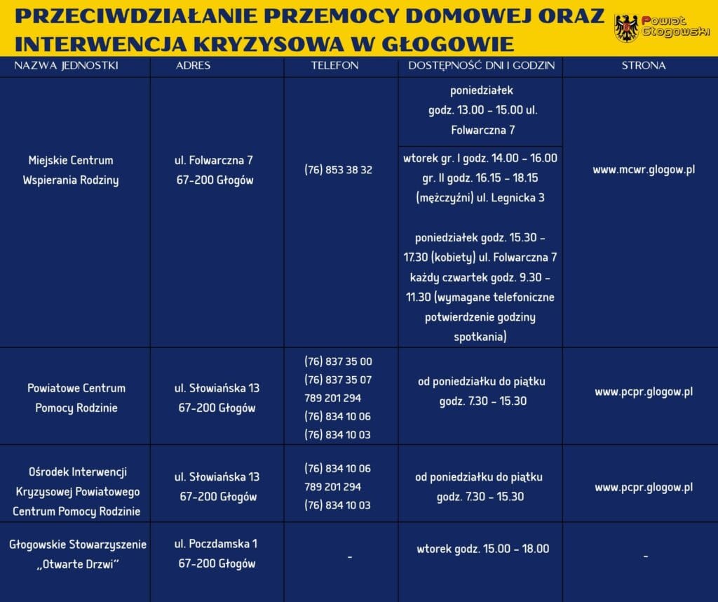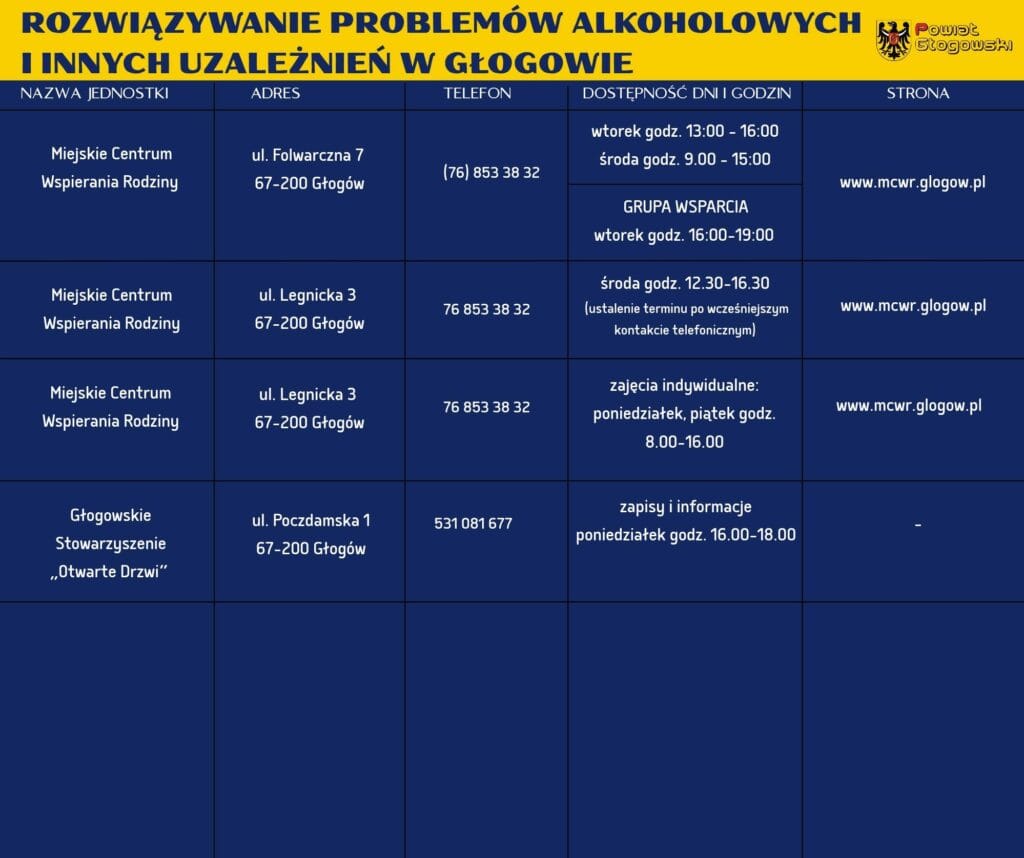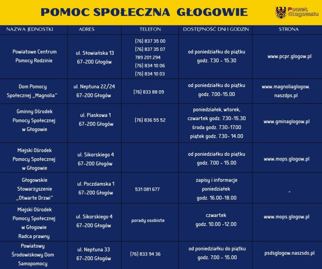 Szczegółowe informacje dostępne są na stronie internetowej Powiatu Głogowskiego: