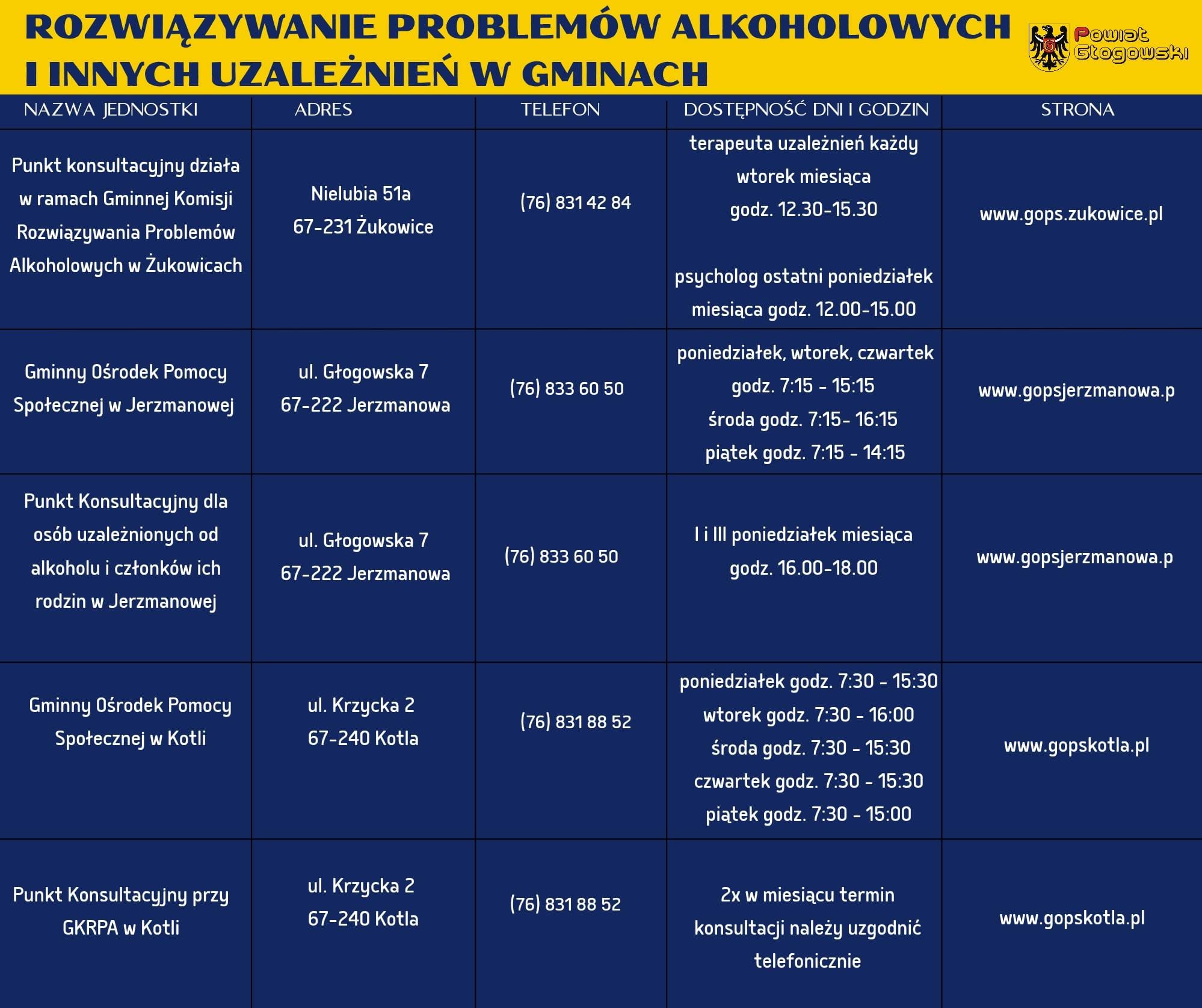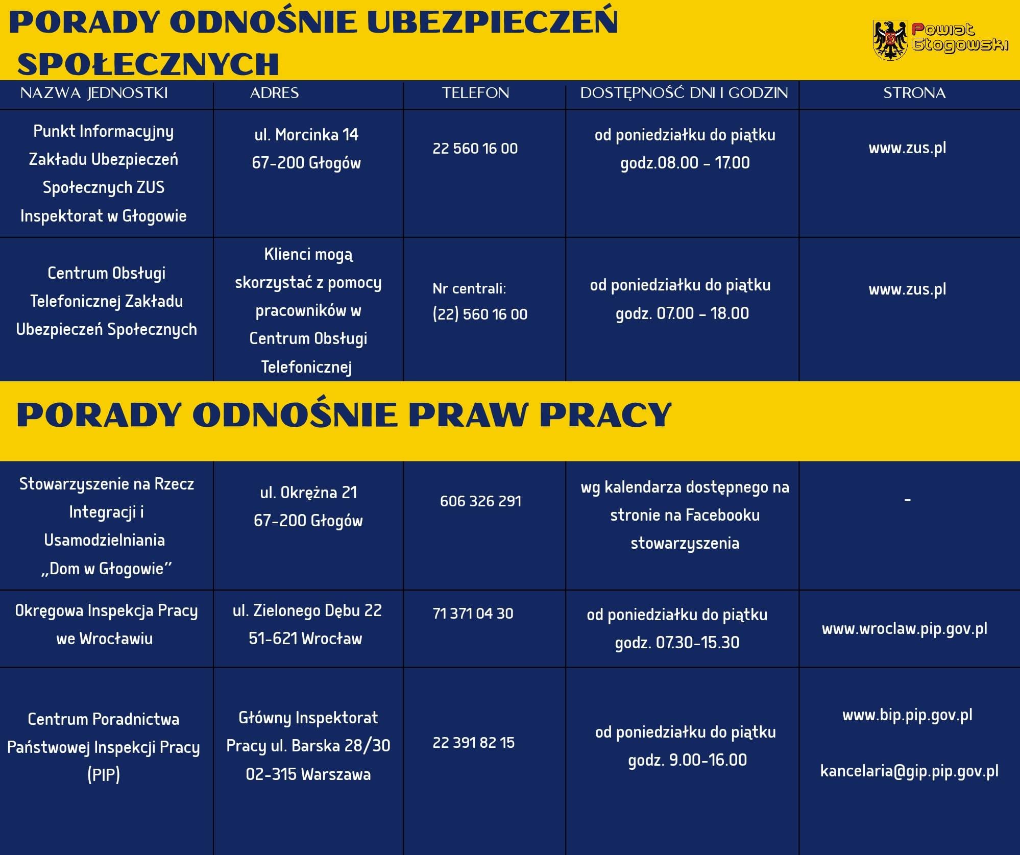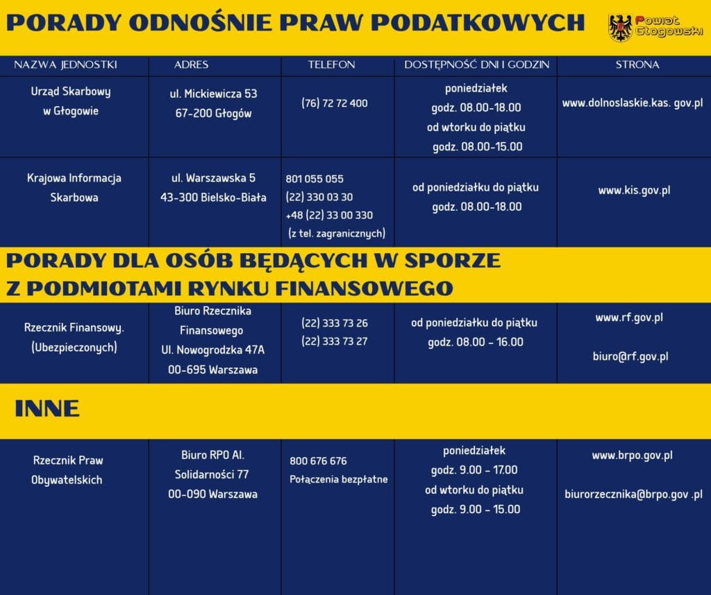 Szczegółowe informacje dostępne są na stronie internetowej Powiatu Głogowskiego: