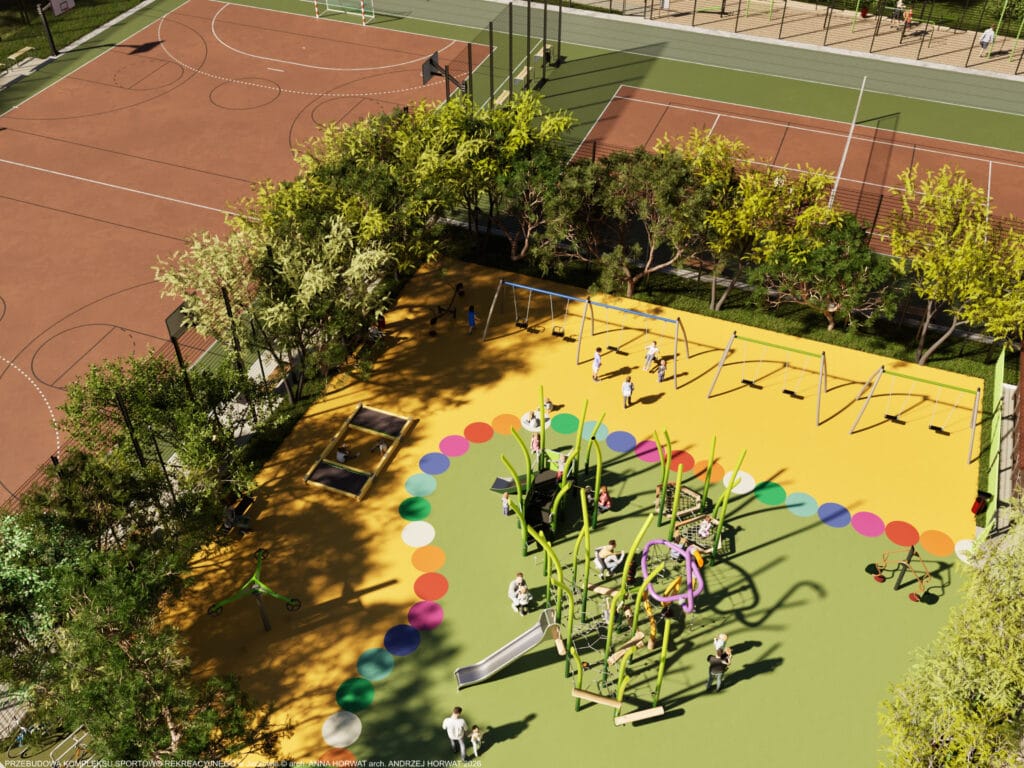W ramach projektu przewidziano m.in. renowację istniejących boisk sportowych oraz bieżni lekkoatletycznej, budowę strefy street workout przeznaczonej dla młodzieży i dorosłych, a także nowoczesnego i bezpiecznego placu zabaw dla dzieci. Powstanie również przestrzeń do treningu squash, a cały teren zostanie uzupełniony o elementy małej architektury, wiaty rekreacyjne, stojaki rowerowe, modernizację oświetlenia oraz nowe nasadzenia zieleni.