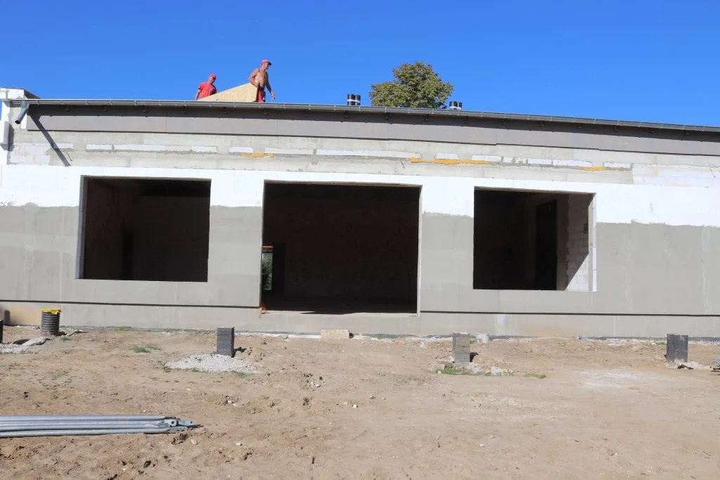 Długo wyczekiwane jako niezbędne miejsce integracji mieszkańców – świetlica wiejska. Miejsce narad, spotkań, podejmowania przedsięwzięć, a także zabaw dla dzieci i dorosłych. Bryła budynku świetlicy w Zofiówce jest już zamknięta. Pojawiła się konstrukcja dachu, a na nim dachówka. Docieplone są również ściany, montowane instalacje. Wszystko po to, by już niebawemmieszkańcy Zofiówki mogli cieszyć się ze swojego nowoczesnego miejsca spotkań i integracji.