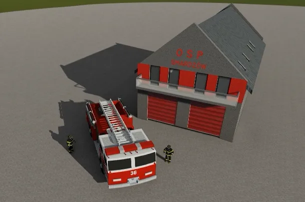 Remiza będzie sąsiadować ze świetlicą wiejską.Jej funkcjonalne zaprojektowanie pozwoli na bezpieczne przechowywanie sprzętu oraz prowadzenie zarówno ćwiczeń, jak i szkoleń. W części przyziemnej zaplanowano dwustanowiskowy garaż , toalety damskie i męskie wraz z szatniami. Na poddaszu znajdować się będzie sala, pokój zarządu, kotłownia, toalety damskie i męskie, a także kuchnia z pomieszczeniem socjalnym.