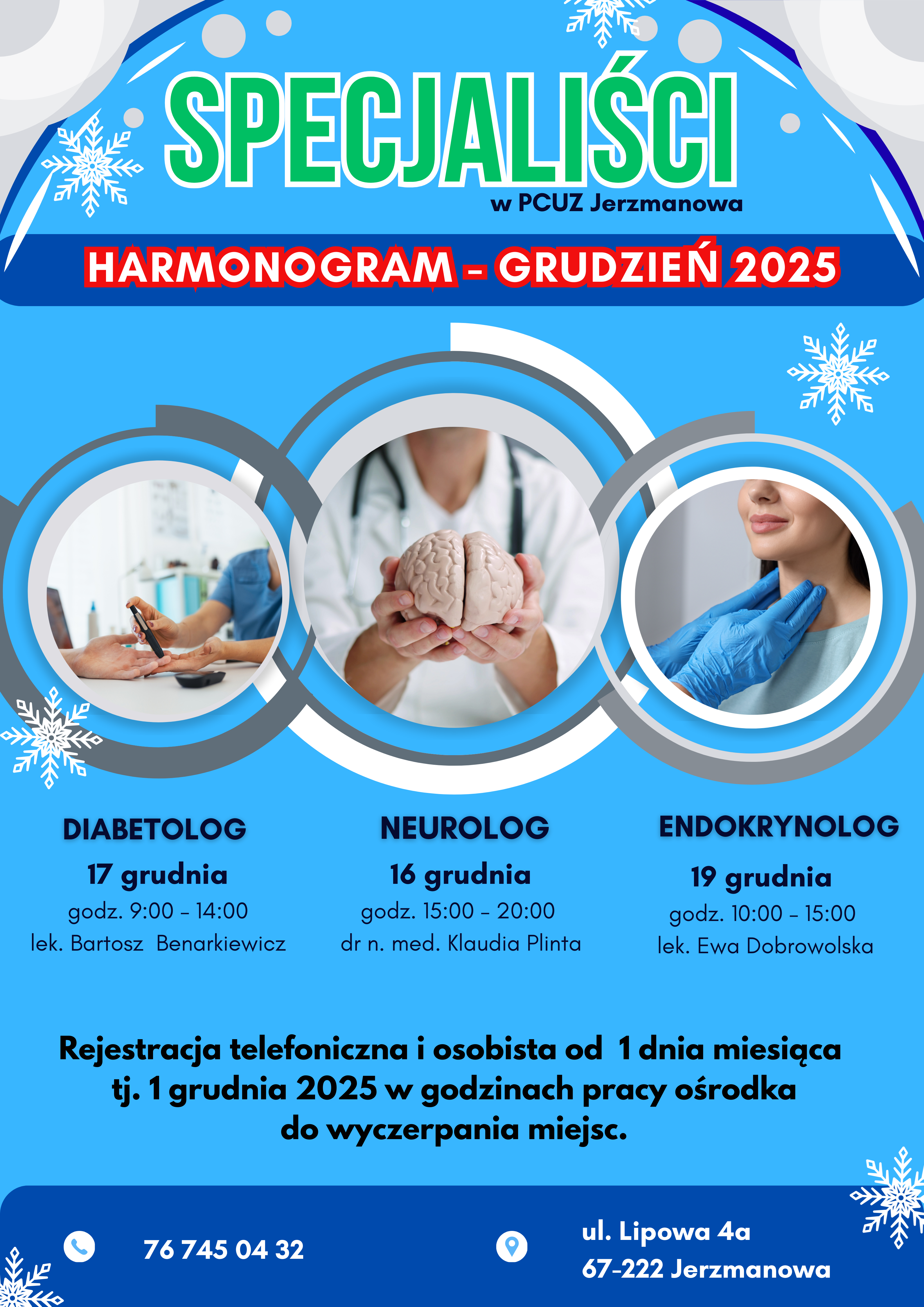 Harmonogram przyjęć lekarzy – Ośrodek Zdrowia w Jerzmanowej Grudzień 2025