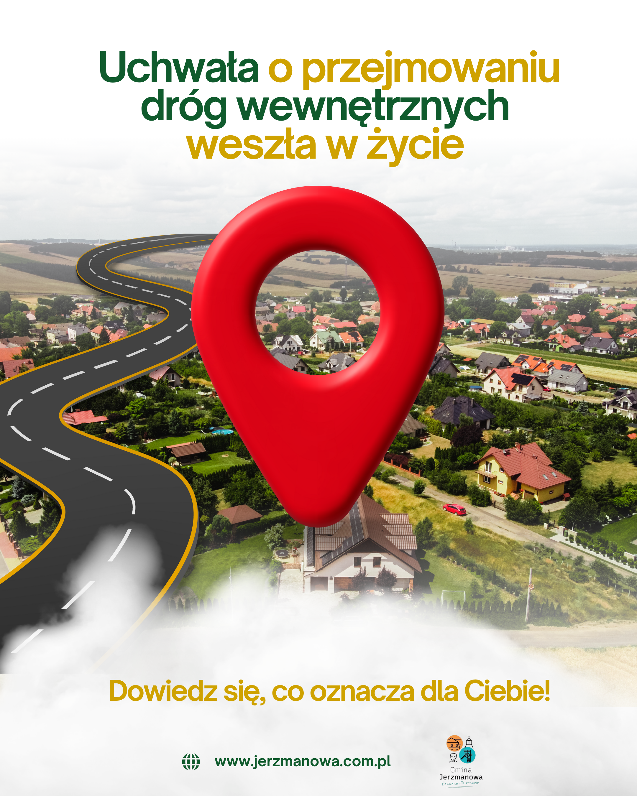 Zachęcamy mieszkańców, szczególnie właścicieli terenów z drogami wewnętrznymi, do zapoznania się z pełną treścią uchwały : https://bip.jerzmanowa.com.pl/a,33068,uchwala-nr-xvi1062025-rady-gminy-jerzmanowa-z-dnia-10-wrzesnia-2025-r-w-sprawie-ustalenia-zasad-nieo.html