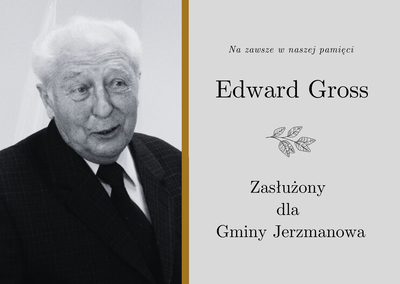 Z głębokim smutkiem i żalem przyjęliśmy wiadomość o śmierci śp. Edwarda Grossa , lokalnego artysty, twórcy i wieloletniego nauczyciela, który został pierwszym "Zasłużonym dla Gminy Jerzmanowa" .