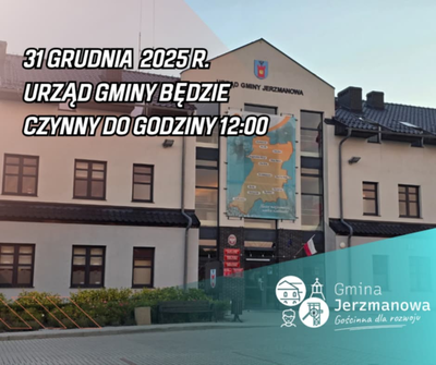 Informujemy, że w środę, 31 grudnia 2025 r., Urząd Gminy będzie czynny do godziny 12:00.