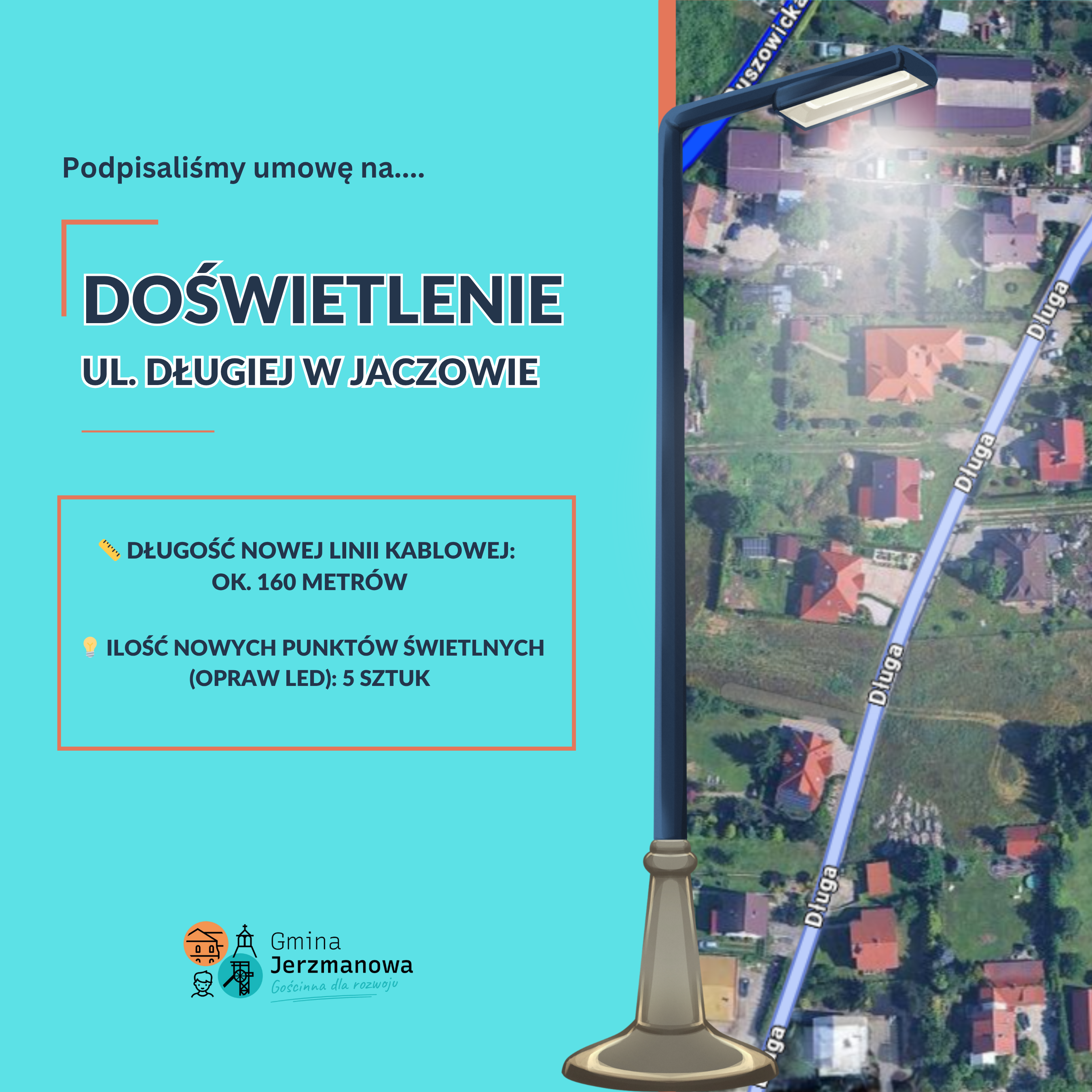 Gmina Jerzmanowa realizuje kolejne zadanie mające na celu poprawę bezpieczeństwa oraz komfortu mieszkańców. W miejscowości Jaczów, przy ul. Długiej, nastąpi rozbudowa istniejącej sieci oświetlenia drogowego poprzez zagęszczenie punktów świetlnych.