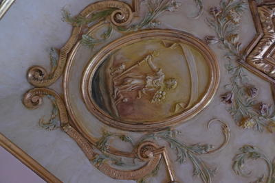 To już kolejna ósma odsłona ARCHITEKTONICZNYCH CIEKAWOSTEK, w której zaprezentujemy zdobiony owalny medalion. Wypełnia on narożnik przestrzeni stropu sali drugiego traktu pałacu w Jerzmanowej. Dekoracyjny medalion prezentuje postać mitologiczną Kybele. Była to frygijska bogini płodności, urodzaju, wiosny, gór, miast obronnych i strażniczka zmarłych. Kybele zwykle była zwana Matką Bogów albo Wielką Macierzą(łac. Magna Mater). Bogini była czczona od tysiącleci w całej Azji Mniejszej. W VII i VI w. p.n.e. jej kult dotarł do Grecji, gdzie kojarzono ją z Reą i Demeter.